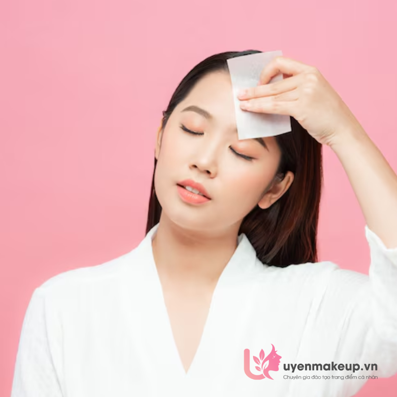 Trong ngày, nếu da bạn tiết dầu, hãy dùng giấy thấm dầu chậm nhẹ lên vùng da bóng nhờn, thường là 2-3 lần một ngày. Cách này giúp duy trì lớp makeup lâu trôi và ổn định hơn, không gây bí da hay khiến kem nền bị xê dịch.